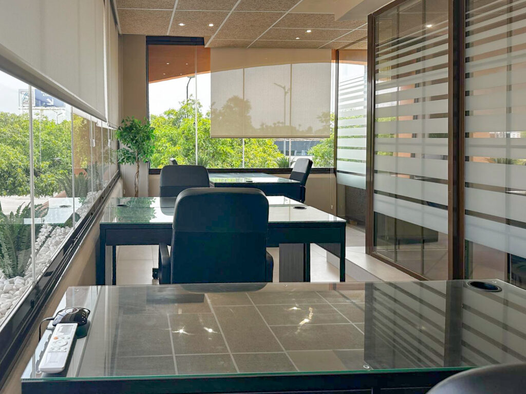 Espacio privado para 5 personas con vistas al exterior y mucha claridad. Un entorno moderno y cómodo que combina privacidad, colaboración y productividad para tu equipo.