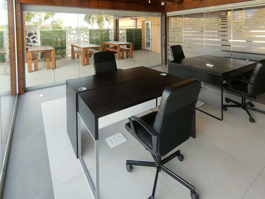 Nuestro espacio de coworking incluyen todos los servicios como cocina totalmente equipada, internet de alta velocidad, acceso flexible mediante portero inteligente, total seguridad con circuito de cámaras cerrado, servicios de recepción y contratos flexibles.